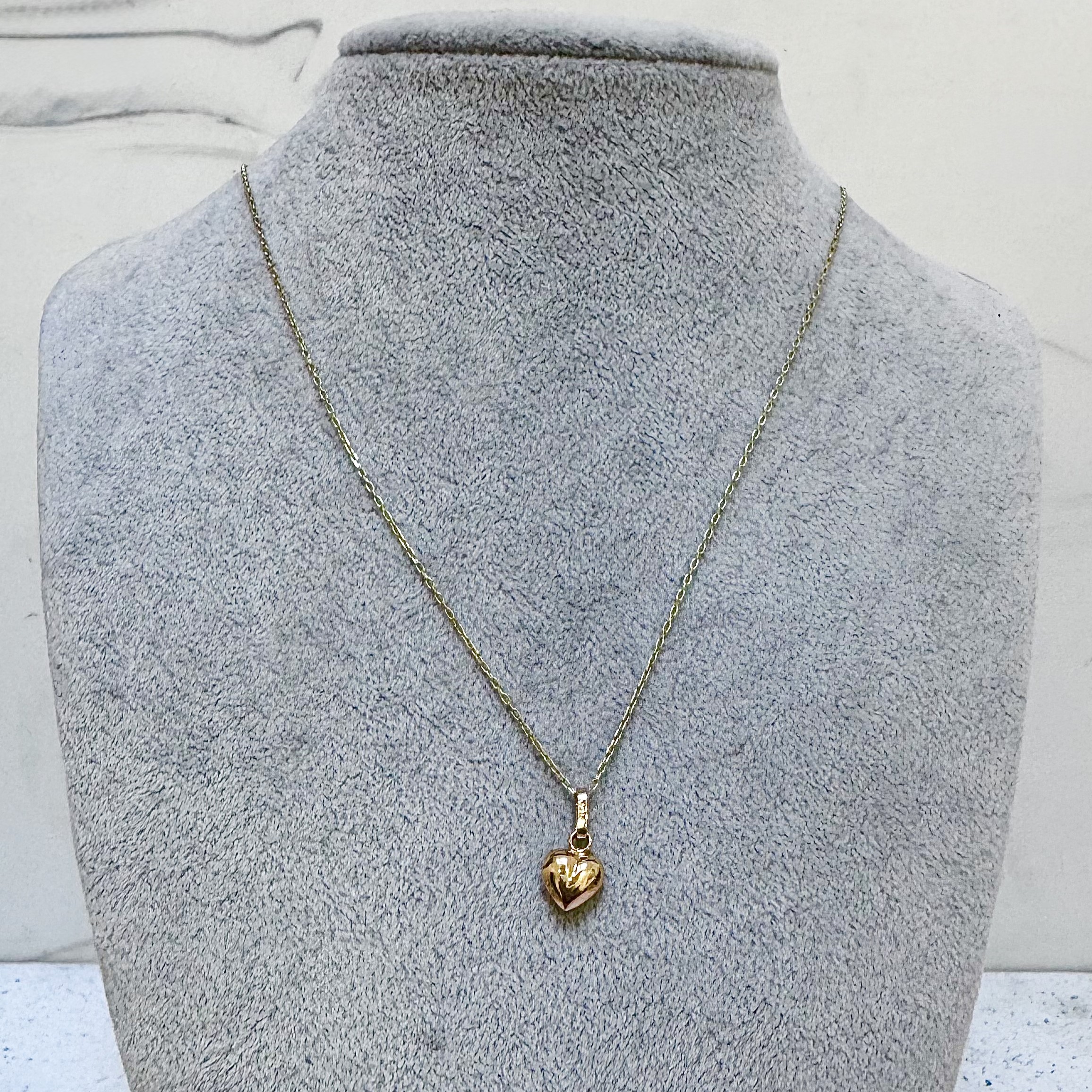 Collar de oro 18quilates Hecho en chile Modelo mini corazón Cadena maquina de 60 CM Tamaño corazón 8 x 8 MM peso total collar 2,2 gramos aproximados Disponible Envios a todo Chile o nos puedes visitar previa cita al +56992201582