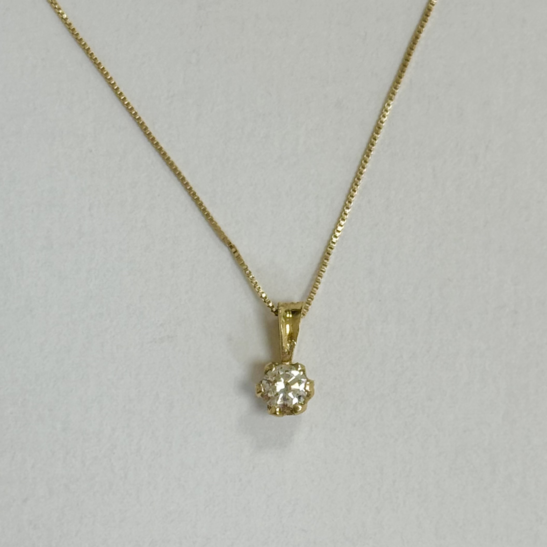 Delicado y elegante collar de oro miel de 18 kilates con un punto de luz muy delicado